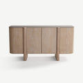 This stunning Solid Wood sideboard is a perfect fusion of sculptural elegance and functional design. Featuring gently curved edges and prominent vertical accents, it brings softness and sophistication to any space. The natural wood grain is subtly highlighted through a light-toned finish, enhancing its organic beauty. Four cabinet doors open to reveal ample interior storage, ideal for organizing tableware, linens, or everyday essentials. The raised base adds visual lightness while maintaining stability. Whether placed in a dining area, hallway, or living room, this sideboard adds a warm, modern touch that complements minimalist and Scandinavian-inspired interiors beautifully. Crafted for timeless appeal.
