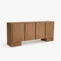 Crafted from premium solid oak, this artisan sideboard blends natural beauty with contemporary design. Its minimalist silhouette is enhanced by rich wood grain patterns and a seamless block-style base, giving it a grounded yet elegant presence. Four soft-close doors conceal spacious storage, ideal for dining essentials, media equipment, or household items. The hand-finished surface highlights the unique texture and character of the wood, making each piece one-of-a-kind. Perfect for modern, rustic, or transitional spaces, this sideboard serves as both a functional storage solution and a striking design statement. Built to last, it's a timeless addition to any home.