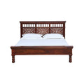 Bring timeless charm and unmatched durability into your home with this exquisitely crafted bed made from premium Sheesham wood. Designed in a traditional style, the bed showcases a rich walnut finish that highlights the natural grain of the wood, while the intricately carved floral paneling on the headboard adds a touch of artistic elegance.