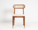 The Boston Solid Wood & Rattan Cane Dining Chair blends classic design elements with modern elegance, making it a perfect addition to any dining or living space. Crafted from high-quality solid wood, the chair boasts a rich natural finish that highlights the wood grain beautifully. The backrest is intricately woven with natural cane in a rounded rectangular frame, lending it a breezy, vintage aesthetic. The cushioned seat is upholstered in a neutral fabric, ensuring both comfort and versatility in styling.